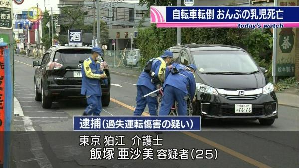 道路に急に飛び出してきた母娘が転倒する=逮捕