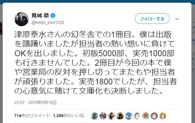 実売部数をツイートしましたが、本来書くべきことではなかったと反省しています。