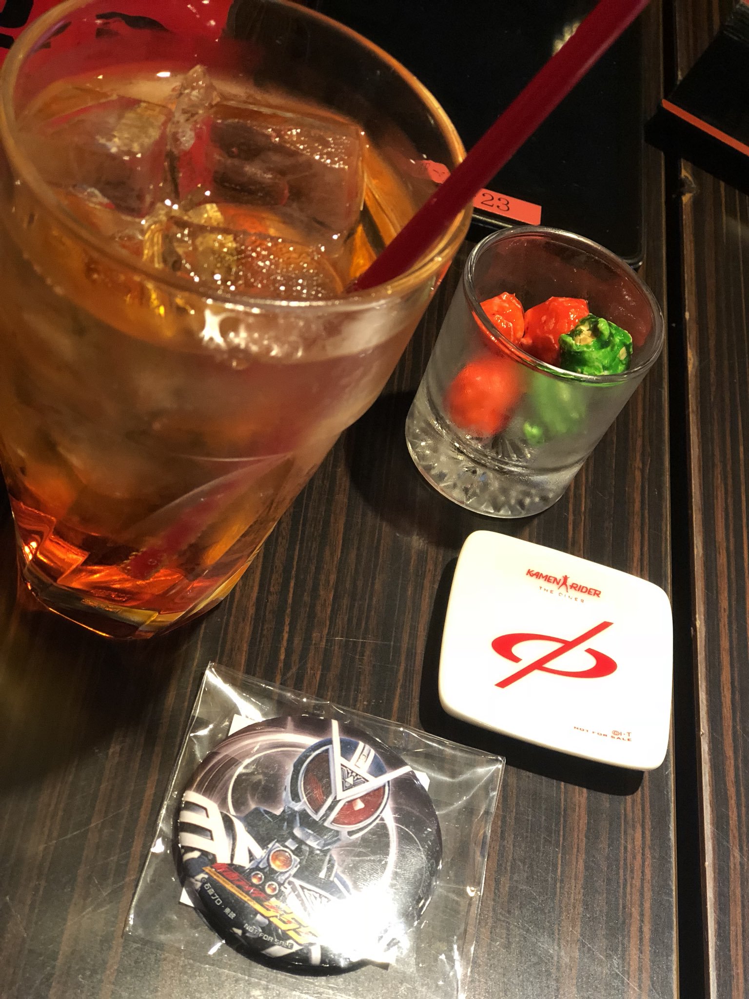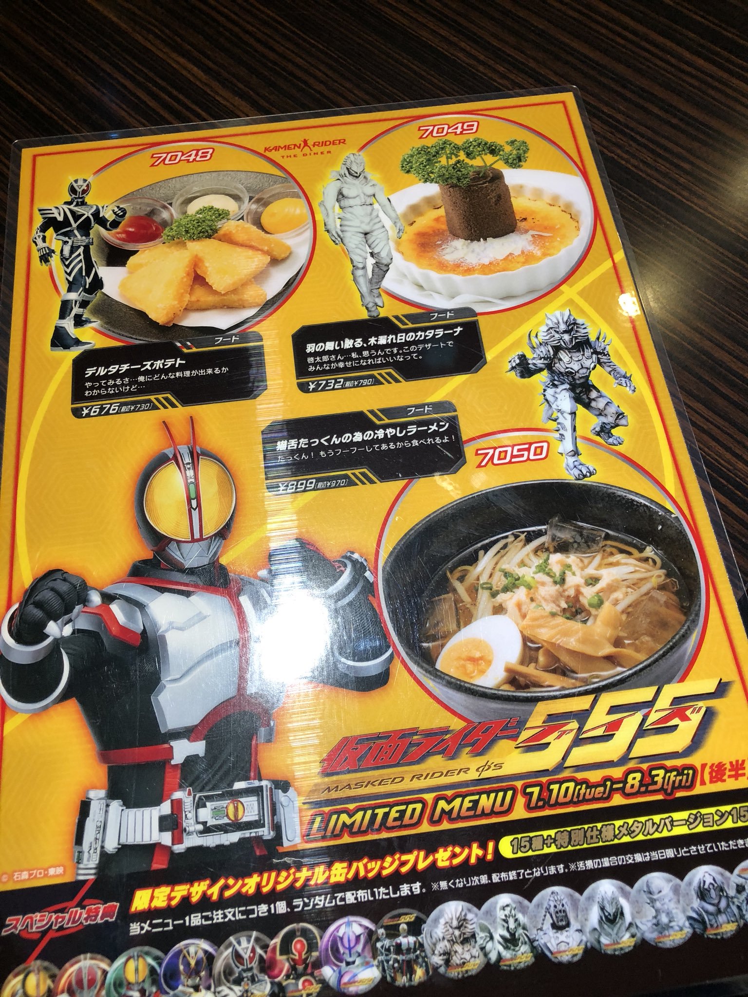 本日仮面ライダーザダイナーにてバッジ欲しさに大量注文をしてこの状態で帰る人がいました。しかもコラボメニューの中で一番安い物だからなおたちが悪い。