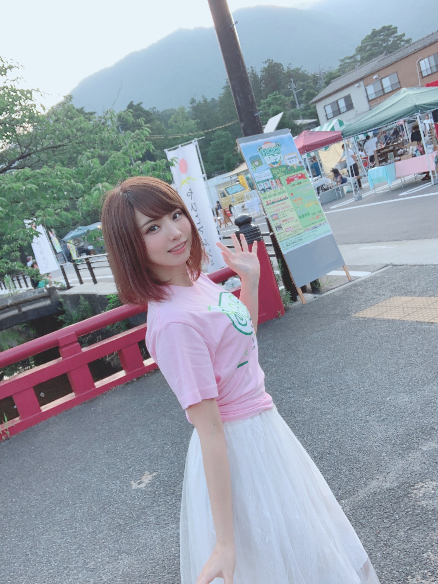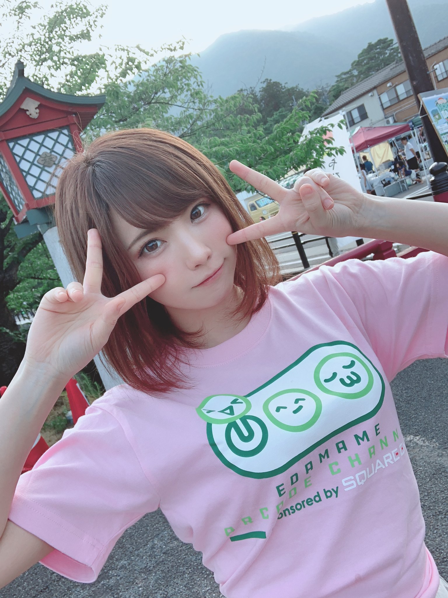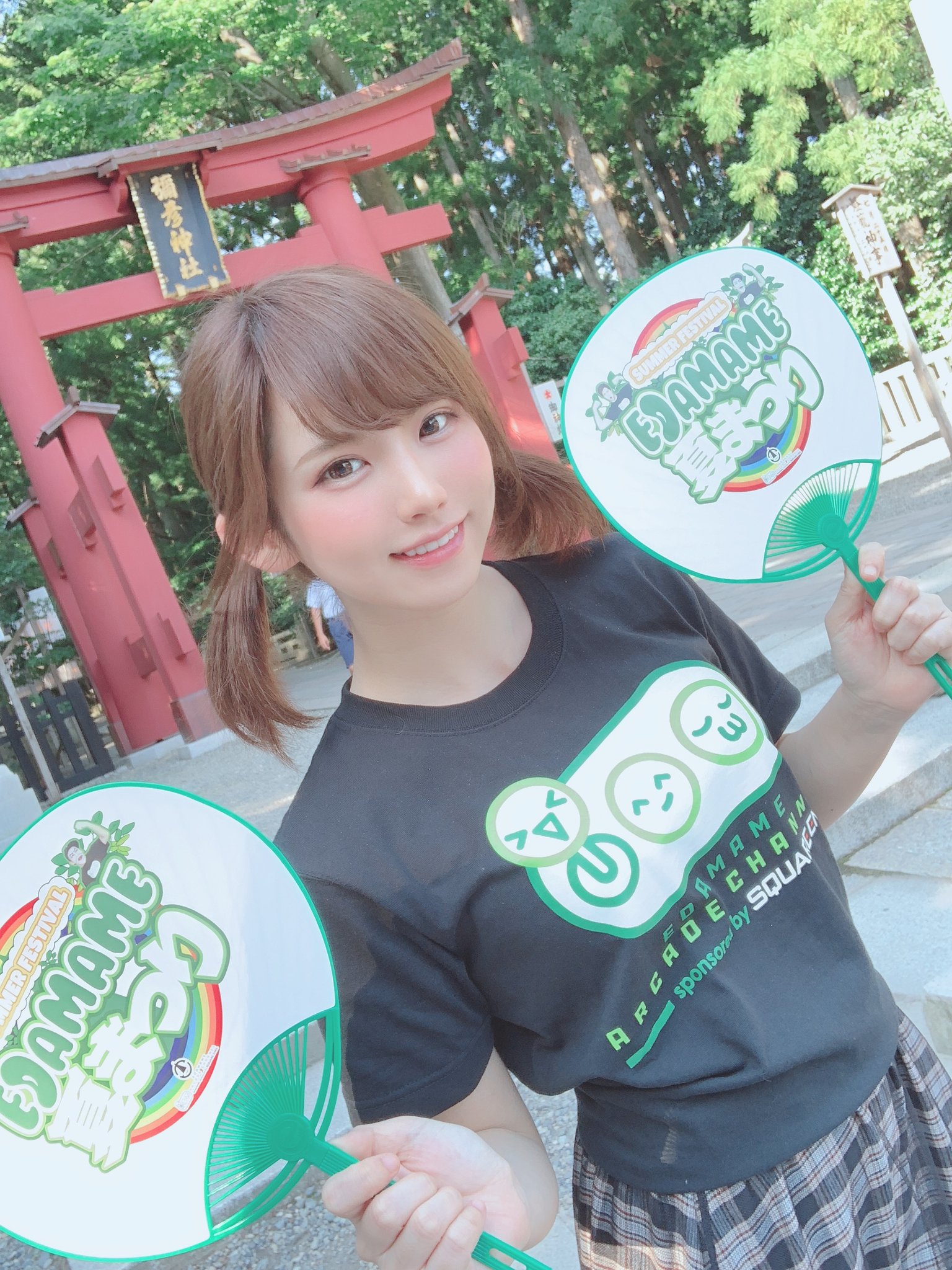 お祭りのゲストがこの女の子(レイヤーのえなこ)で、衣装としてお祭りオフィシャルTシャツ着てもらってるから